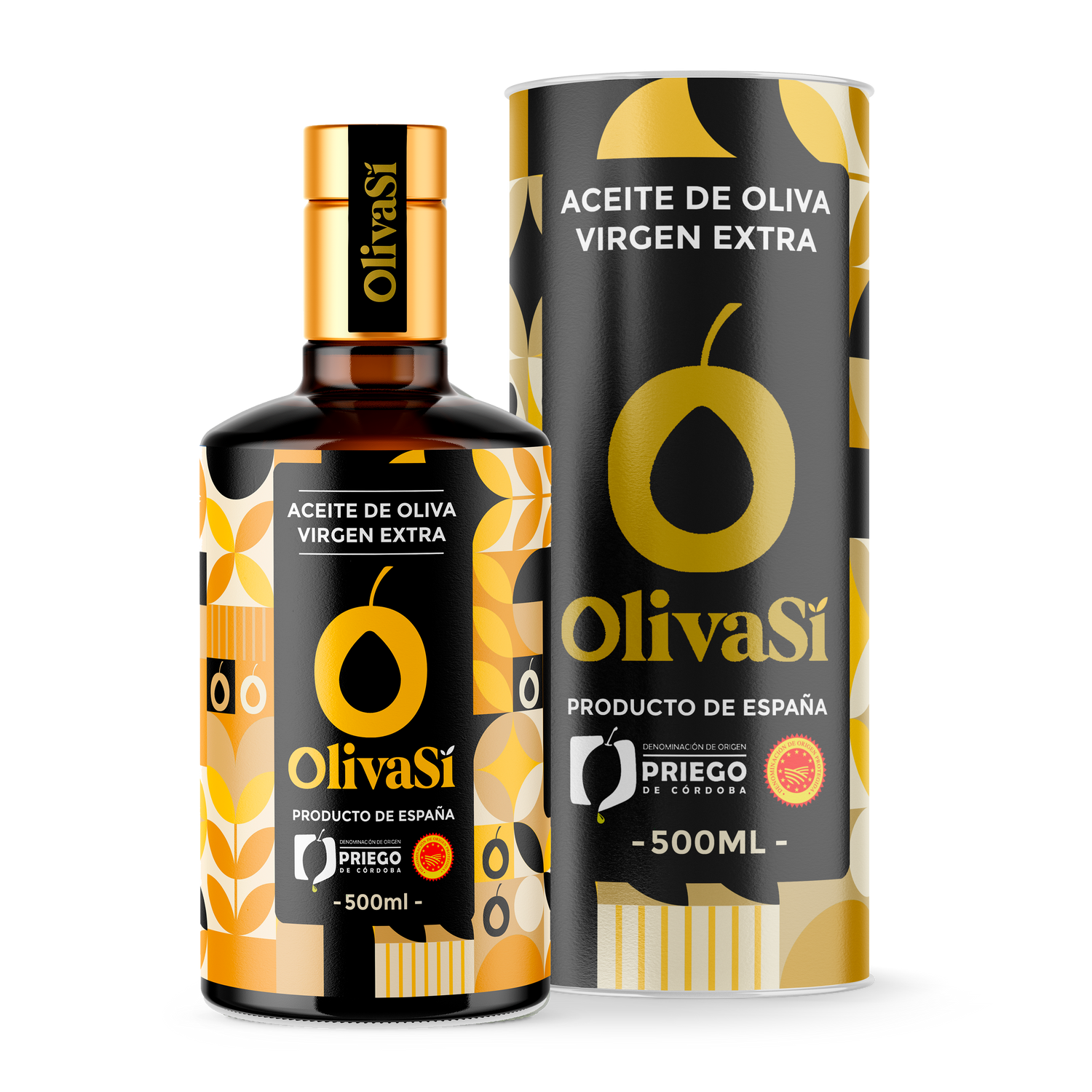 Aceite de Oliva Virgen Extra con denominación de Origen Priego de Córdoba, Oliva Sí edición Padre, 500ml, coupague Hojiblanco-Picudo-Picual.
